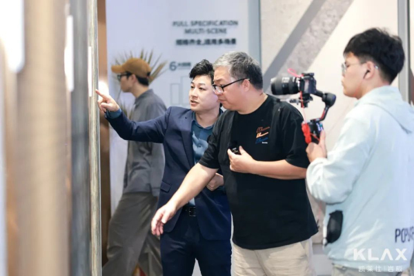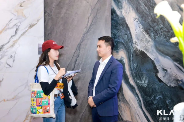 多家媒体都来到2C01打卡探展,包括中国陶瓷网、华夏陶瓷网、陶瓷信息等行业媒体,以及新浪微博等门户网站,KLAX品牌营销中心总经理熊总强也向媒体朋友们讲解了展位的设计亮点与产品特色。 岩之有物 荣誉加冕,领先向前