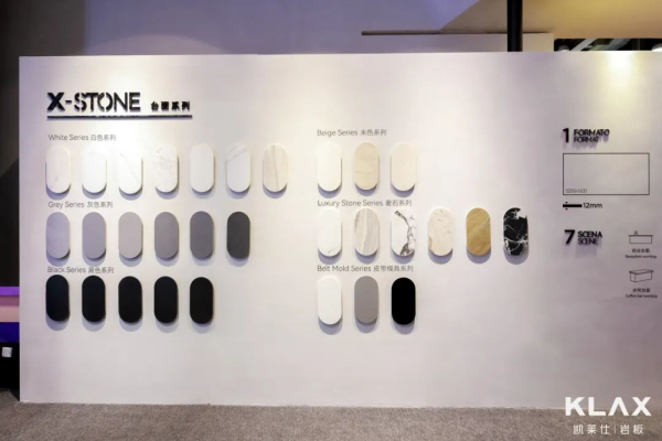 KLAX灵活运用包豪斯时代的设计成果,把品牌符号融入图形拼接展示中,运用多变、空间、秩序、块面的魅力,对品牌DNA进行多元化创新。 高端岩板并非只源于品牌营销的形象塑造,而是通过不断提升产品竞争力深化产品定位。一如品牌DNA的拼接岩板,不只是一种美学呈现方式,其表面的质感更值得用户去细细品味。 岩之有物 独家工艺,新品首秀